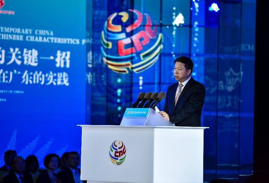 Song Tao, head of the International Department of the Central Committee of the Communist Party of China (CPC), addresses a meeting with the theme "Reform and opening-up holds the key to the destiny of contemporary China" held in Shenzhen, south China's Guangdong Province, May 27,2018. China's reform and opening-up has not only yielded top results, but also provided valuable experience to the world, according to attendees of a meeting held in Shenzhen. (Xinhua/MaoSiqian)