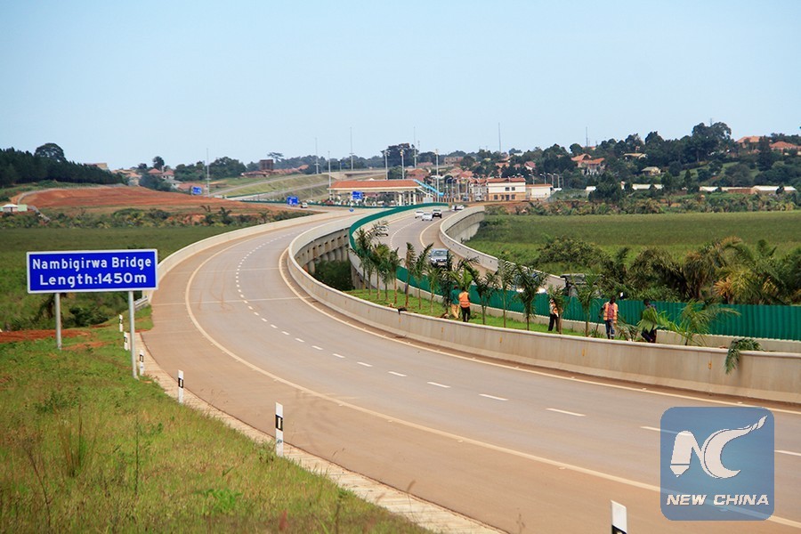 Photo taken on June 12, 2018 shows the 1,450-meter-long Nambigirwa bridge in southern Uganda, which is one of the longest bridges in East Africa and also part of the Chinese company-built Kampala-Entebbe expressway that links the Ugandan capital Kampala and the country's main gateway Entebbe International Airport. (Xinhua/Zhang Gaiping)