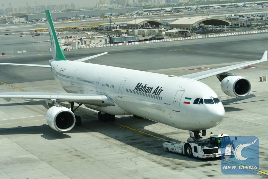 File Photo: A picture take on Sept. 14, 2017 shows an Airbus A340 of Mahan Air at the tarmac at Dubai's International Airport. (Xinhua/AFP)