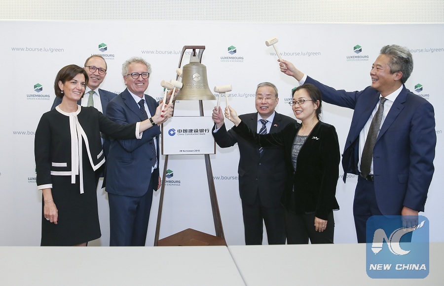 LUXEMBOURG, Sept. 29 (Xinhua) -- The first overseas green bonds with total value of 500 million euros (581 million U.S. dollars) issued by China Construction Bank(CCB) have been formally listed on the Luxembourg Green Stock Exchange this weekend.