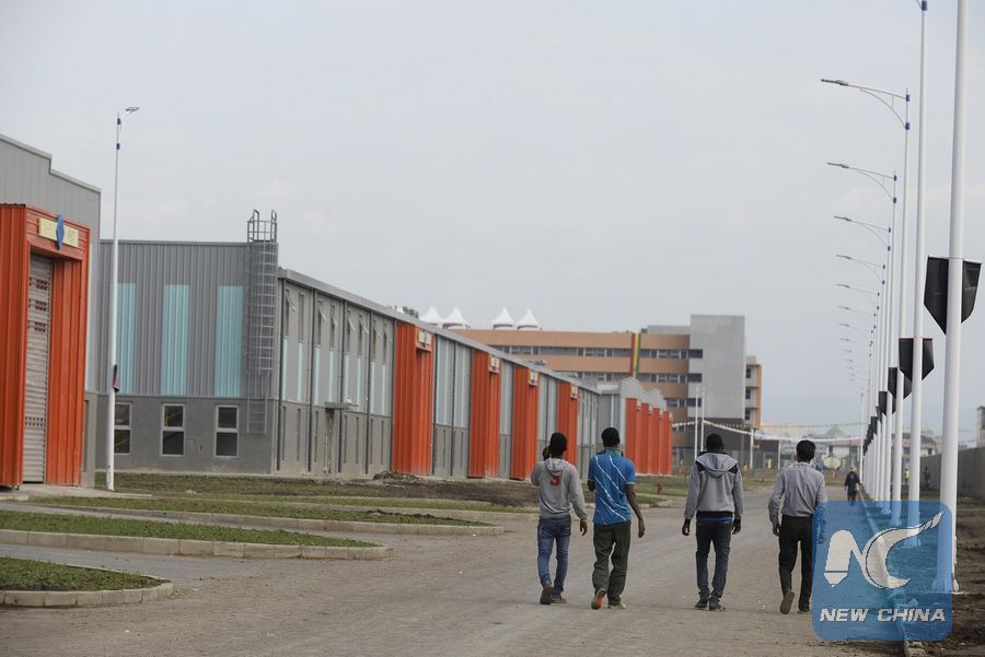 File photo shows people walk at the Hawassa Industrial Park in Hawassa town, 275 kilometres south of Addis Ababa, capital of Ethiopia, July 13, 2016. (Xinhua/Michael Tewelde)