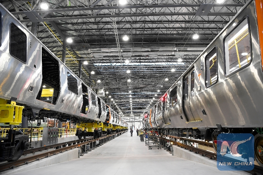 File photo taken on Dec. 18, 2018 shows an assembly plant of CRRC in Springfield, Massachusetts, the United States. The Chinese rail company has completed the production of a pair of subway cars to be delivered to the U.S. state of Massachusetts. (Xinhua/Liu Jie)
