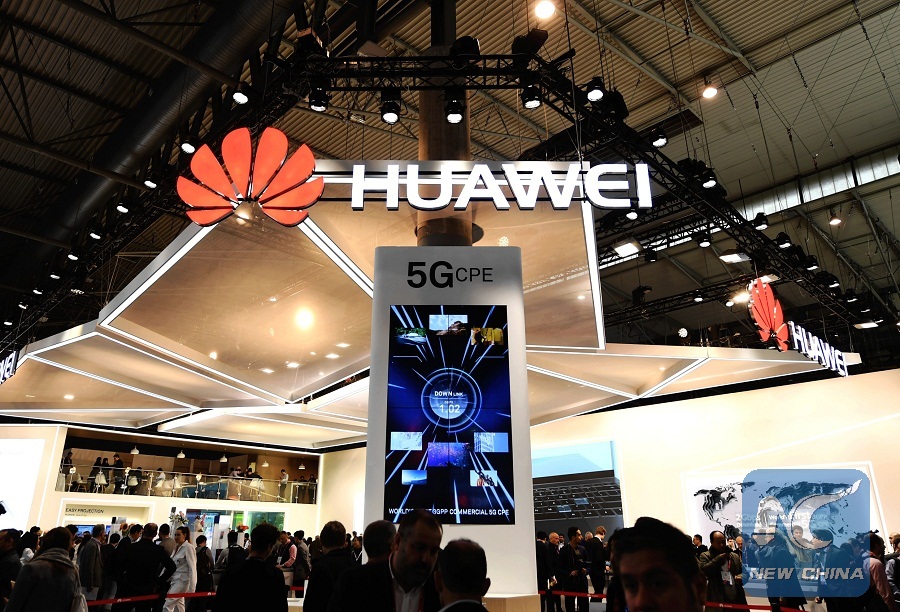 China's telecom giant Huawei displays 5G technology at the 2018 Mobile World Congress in Barcelona, Spain, Feb. 26, 2018. (Xinhua/Guo Qiuda)