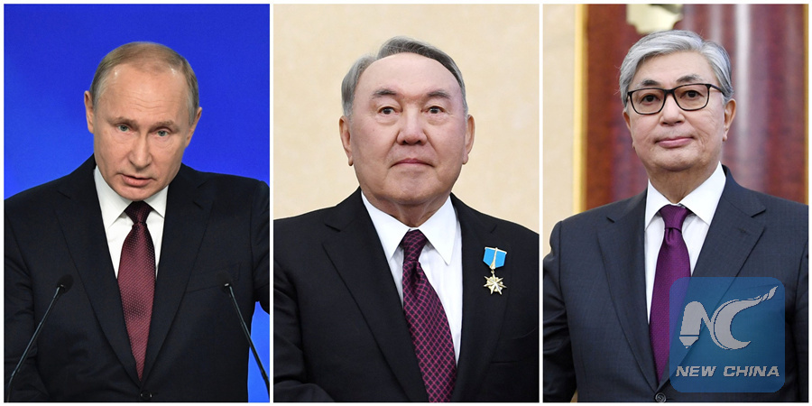 MOSCOW, March 21 (Xinhua) -- Russian President Vladimir Putin and Kazakhstan's former and incumbent presidents on Thursday agreed to closely coordinate their actions to promote stronger bilateral ties.