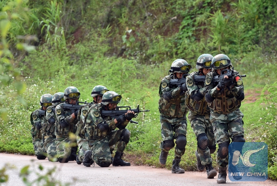 File Photo: Police officers take part in a joint anti-terrorist exercise between Chinese and Laotian police in Xishuangbanna of southwest China's Yunnan Province, Sept. 13, 2016. (Xinhua/Chen Haining)