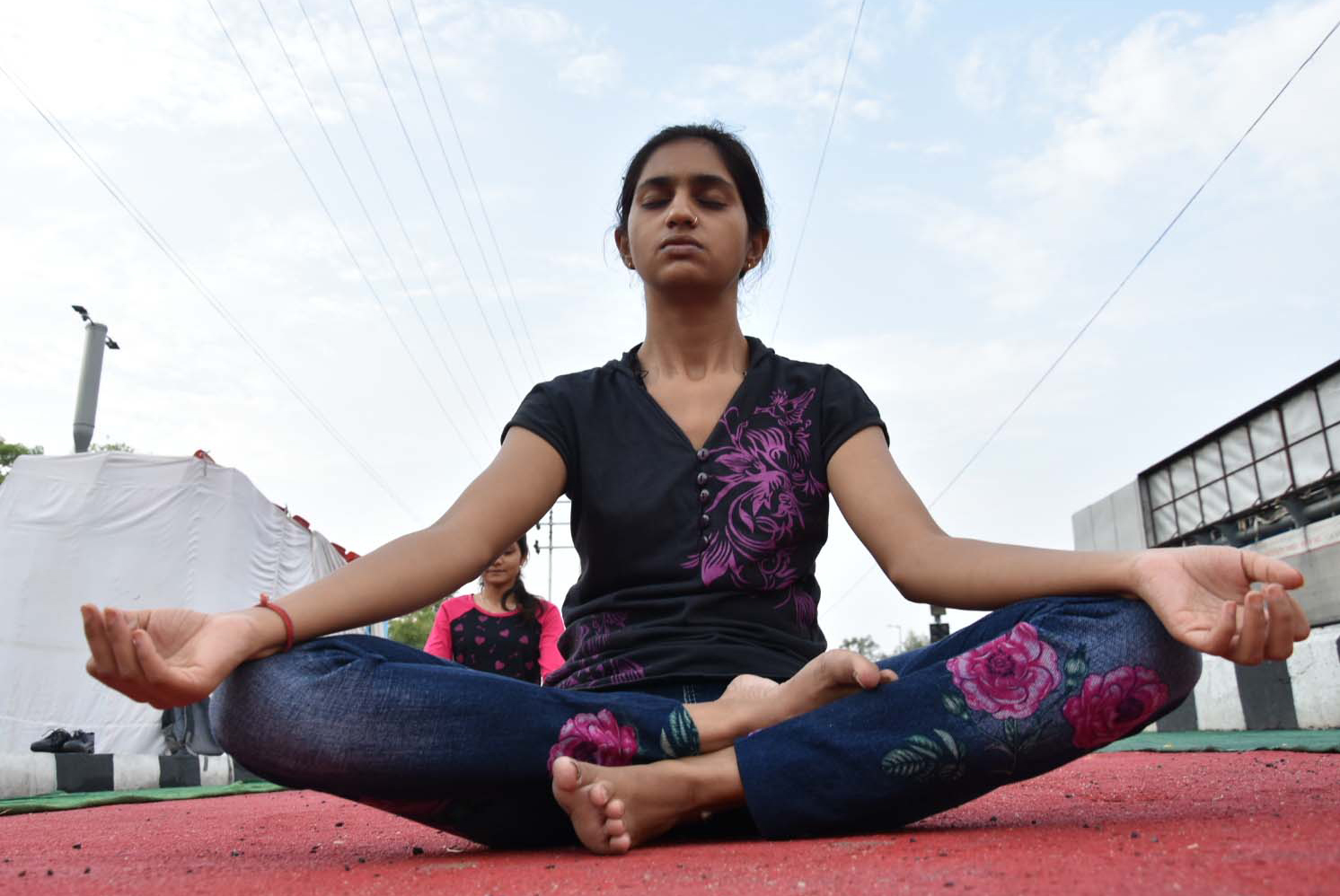 An Indian woman performs yoga on International Yoga Day in Bhopal, India, on June 21, 2018. (Xinhua/Stringer)