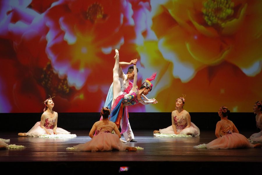 Dancers from Nanjing Song & Dance Troupe perform "Flowers Flourish" on Oct. 11, 2019, in Houston, Texas, the United States. (Xinhua/Chengyue Lao)