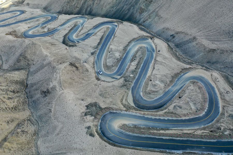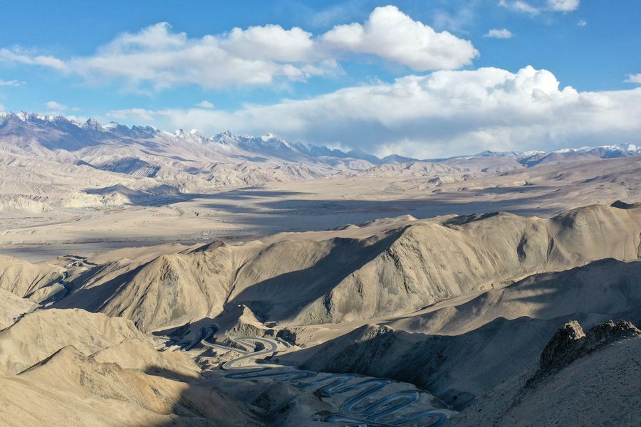 A mountain road in Tajik Autonomous County of Taxkorgan, northwest China's Xinjiang Uygur Autonomous Region, Oct. 20, 2019. (Xinhua/Ding Lei)