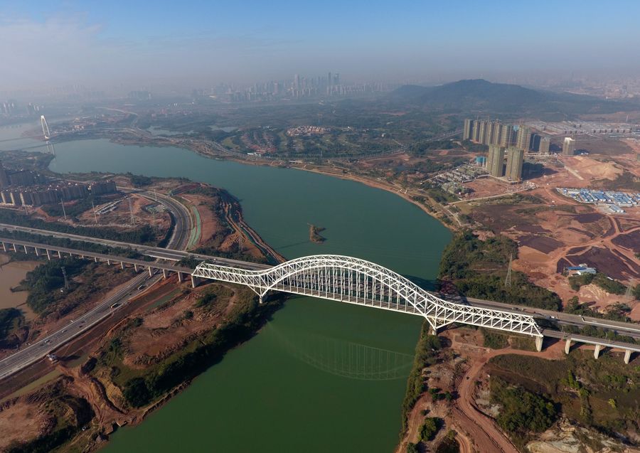 Photo taken on Dec. 21, 2017 shows a bridge in south China's Guangxi Zhuang Autonomous Region. By making full use of its geographical location and the potential of coastlines and border areas, Guangxi capitalized on its advantages and played a bigger role in the Belt and Road Initiative. Through ports and the Beibu Gulf Economic Zone, the trade cooperation between Guangxi and ASEAN countries gained great prospects. (Xinhua/Lu Boan)