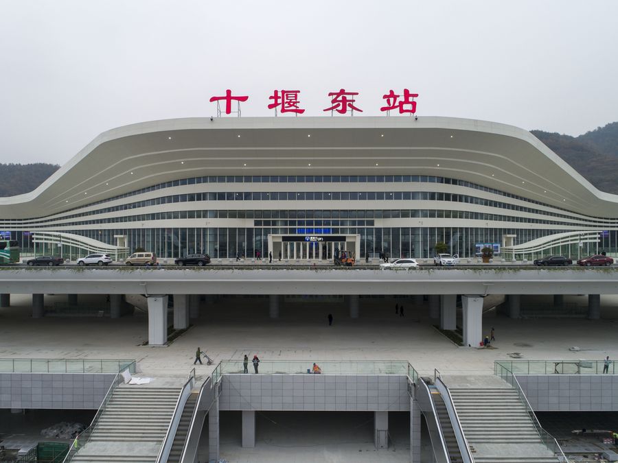 Aerial photo taken on Nov. 27, 2019 shows Shiyan East Railway Station of Wuhan-Shiyan high-speed railway in central China's Hubei Province. (Xinhua/Xiong Qi)
