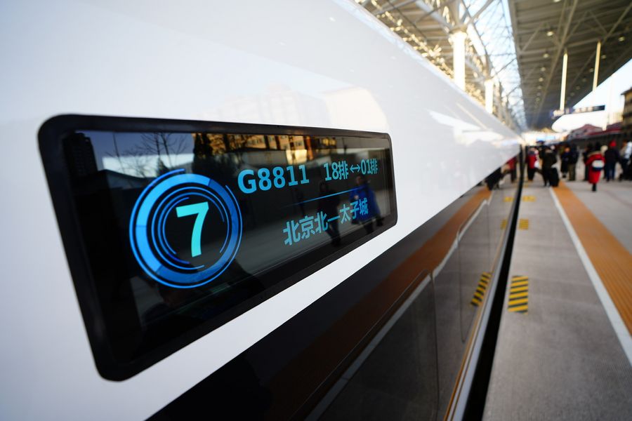 Photo taken on Dec. 30, 2019 shows the G8811 high-speed train bound for Taizicheng Railway Station at Beijing North Railway Station in Beijing, capital of China, Dec. 30, 2019. (Xinhua/Xing Guangli)