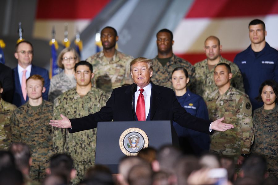 U.S. President Donald Trump speaks at a signing ceremony for the National Defense Authorization Act for Fiscal Year 2020 at Joint Base Andrews, Maryland Dec. 20, 2019. (Xinhua/Liu Jie)