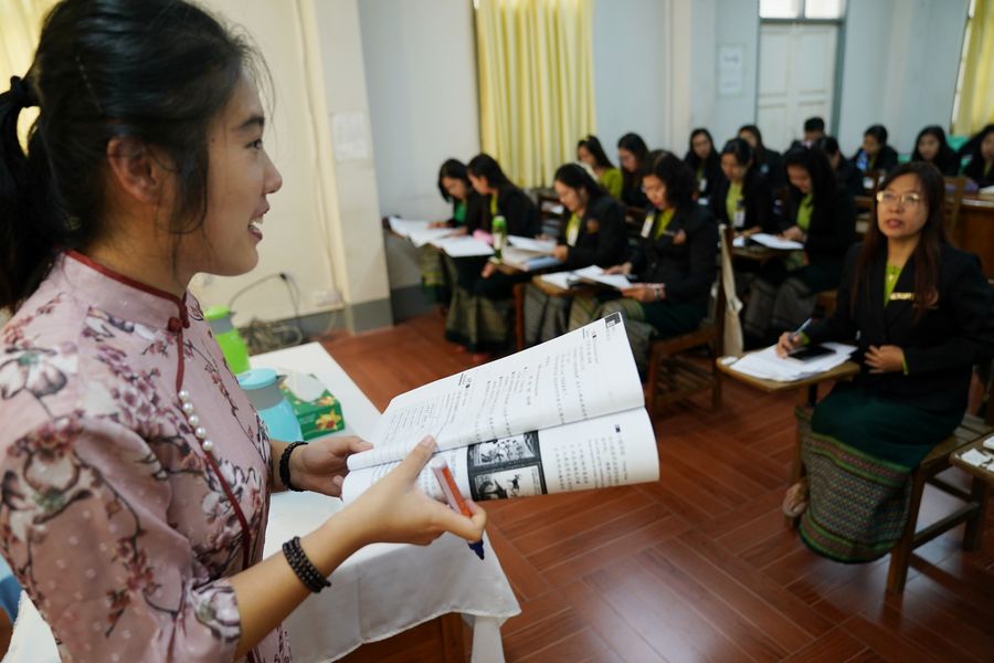 In a classroom here in Myanmar's capital, Lu Rui, a postgraduate from China's Yunnan Normal University, was teaching Chinese in Myanmar Eastern Language and Business Center to over 30 civil servants from Myanmar's Ministry of Commerce.