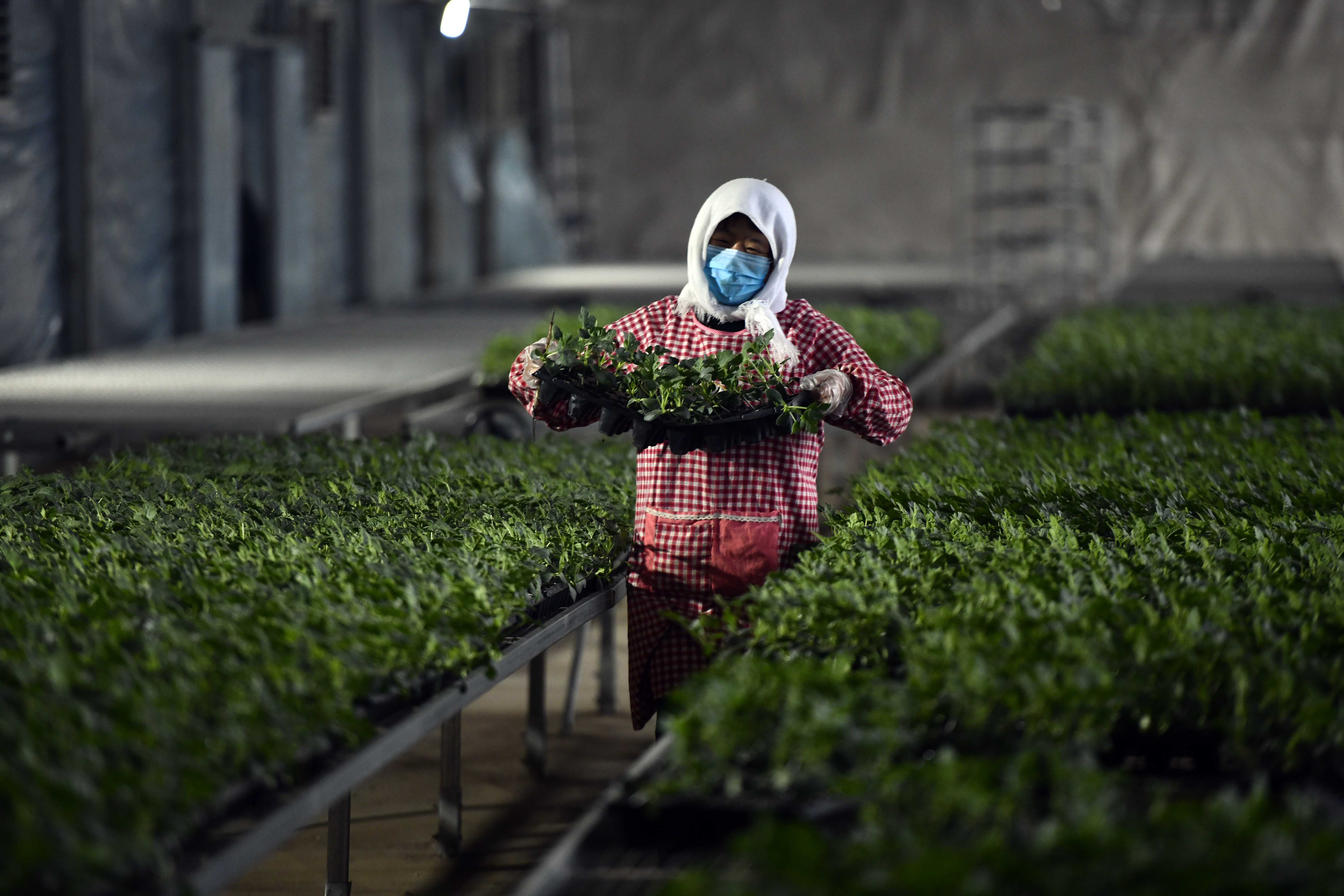 An employee works at a modern agricultural park in Weifang, east China's Shandong Province, Feb. 14, 2020. (Xinhua/Guo Xulei)