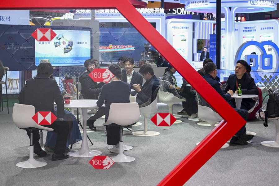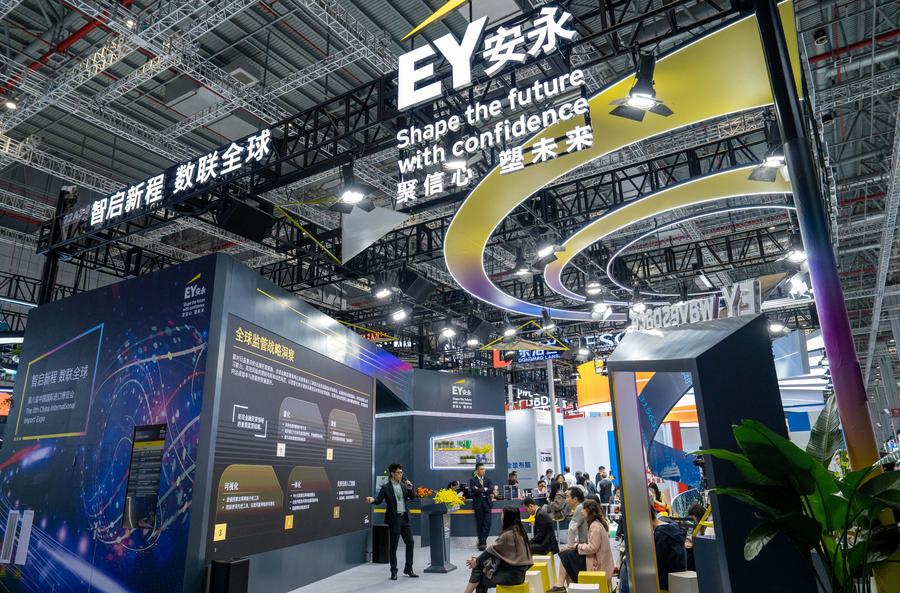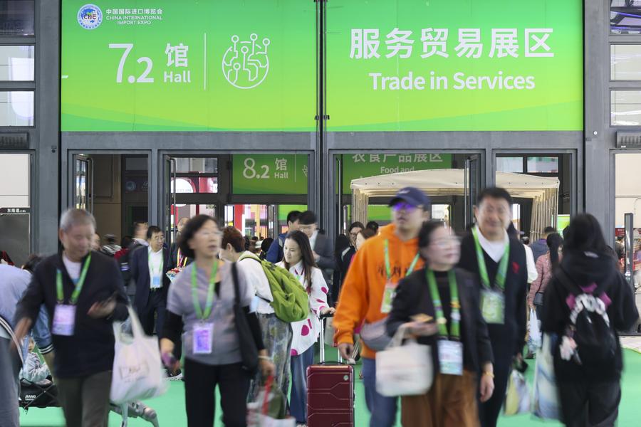 A holographic projection is pictured at the Trade in Services Exhibition area during the eighth China International Import Expo (CIIE) in east China's Shanghai, Nov. 7, 2025. (Xinhua/Zhou Dixiao)This photo shows the booth of Ernst & Young (EY) at the Trade in Services Exhibition area during the eighth China International Import Expo (CIIE) in east China's Shanghai, Nov. 7, 2025. (Xinhua/Zhou Dixiao)People communicate at the booth of HSBC Group at the Trade in Services Exhibition area during the eighth China International Import Expo (CIIE) in east China's Shanghai, Nov. 9, 2025. (Xinhua/Chen Haoming)People talk at the booth of FedEx at the Trade in Services Exhibition area during the eighth China International Import Expo (CIIE) in east China's Shanghai, Nov. 9, 2025. (Xinhua/Chen Haoming)An exhibitor introduces an NFC smart padlock at the Trade in Services Exhibition area during the eighth China International Import Expo (CIIE) in east China's Shanghai, Nov. 9, 2025. (Xinhua/Wang Xiang)People look at a smart logistics system at the booth of DHL at the Trade in Services Exhibition area during the eighth China International Import Expo (CIIE) in east China's Shanghai, Nov. 9, 2025. (Xinhua/Wang Xiang)The Standard Chartered Bank hosts a round table forum on globalization strategies for small- and medium-sized enterprises at its booth at the Trade in Services Exhibition area during the eighth China International Import Expo (CIIE) in east China's Shanghai, Nov. 7, 2025. (Xinhua/Zhou Dixiao)A child interacts with a robotic dog at the Trade in Services Exhibition area during the eighth China International Import Expo (CIIE) in east China's Shanghai, Nov. 9, 2025. (Xinhua/Wang Xiang)This photo shows the Trade in Services Exhibition area during the eighth China International Import Expo (CIIE) in east China's Shanghai, Nov. 9, 2025. (Xinhua/Wang Xiang)■