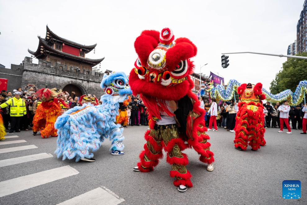Performers stage a lion dance in celebration of the Lantern Festival in Zhangjiajie, central China's Hunan Province, March 3, 2026. Across China, a variety of vibrant activities were held in celebration of the Lantern Festival, which falls on the fifteenth day of the first month of the Chinese lunar calendar, or March 3 this year. (Xinhua/Chen Sihan)