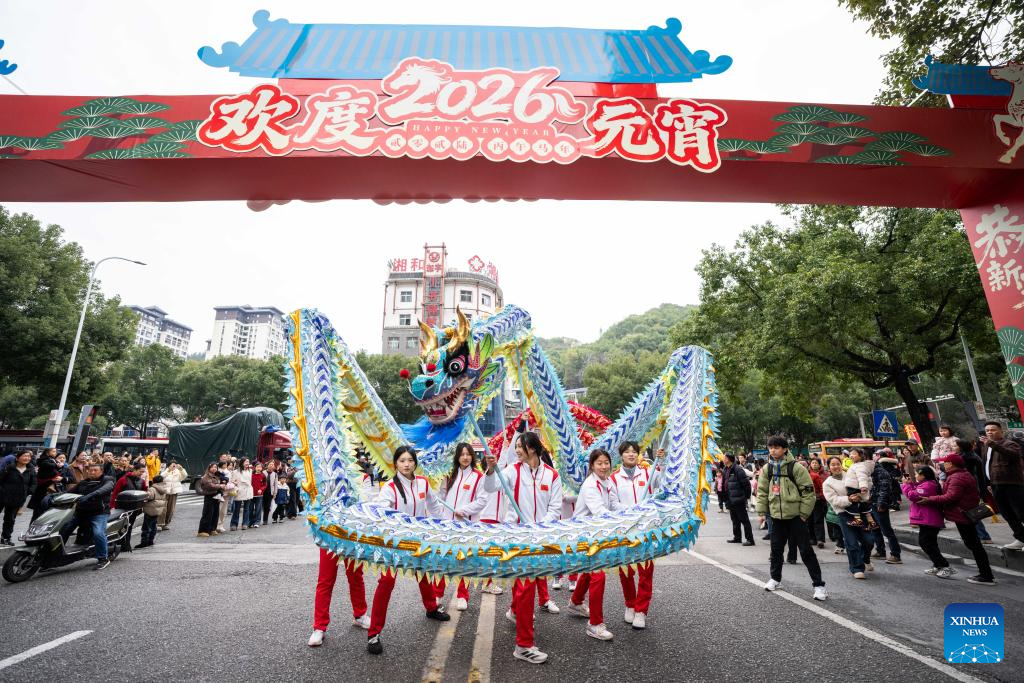 Performers stage a dragon dance in celebration of the Lantern Festival in Jinan, east China's Shandong Province, March 3, 2026. Across China, a variety of vibrant activities were held in celebration of the Lantern Festival, which falls on the fifteenth day of the first month of the Chinese lunar calendar, or March 3 this year. (Xinhua/Zhu Zheng)