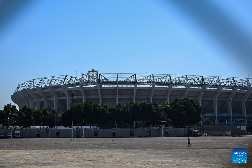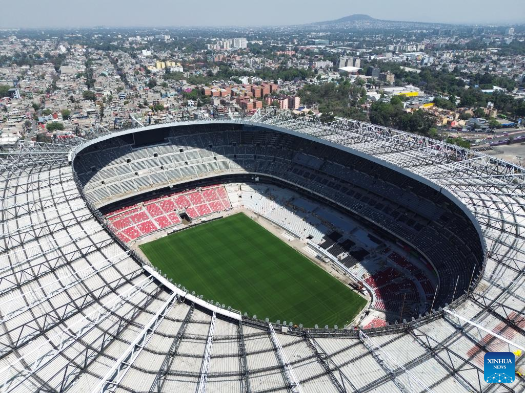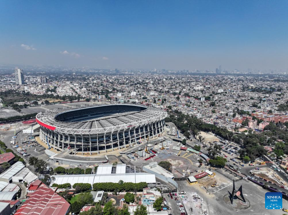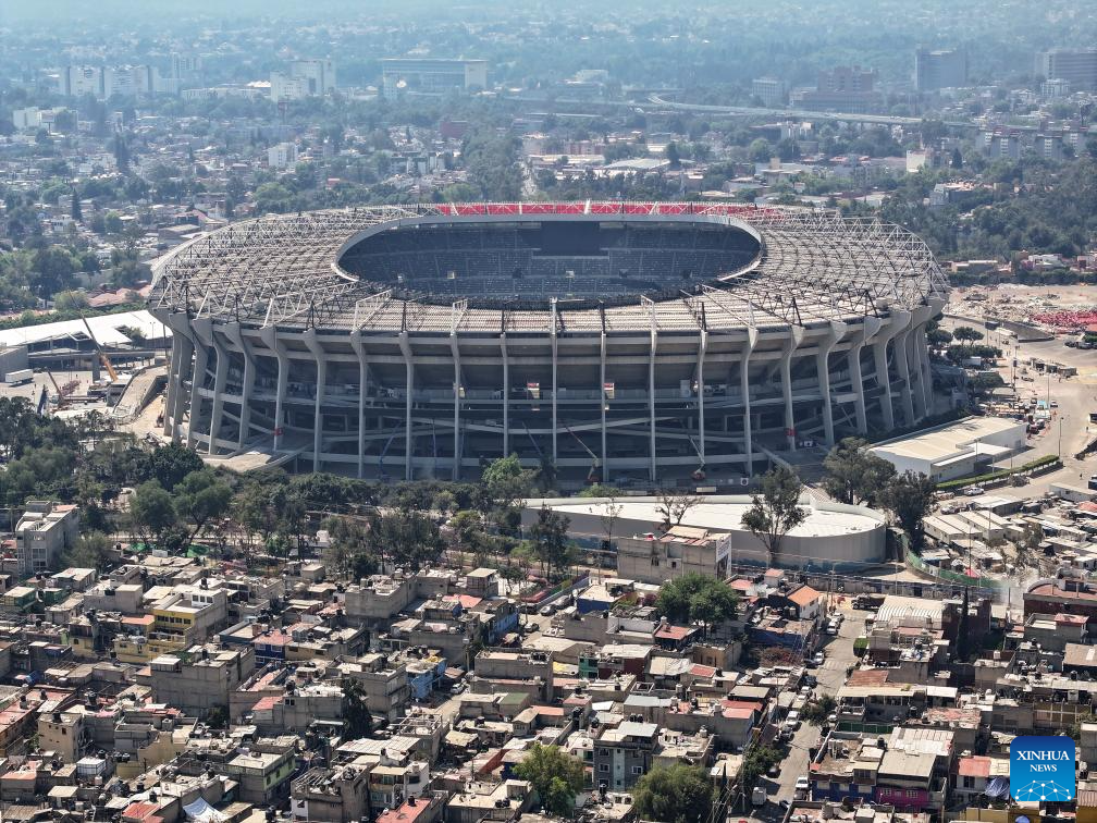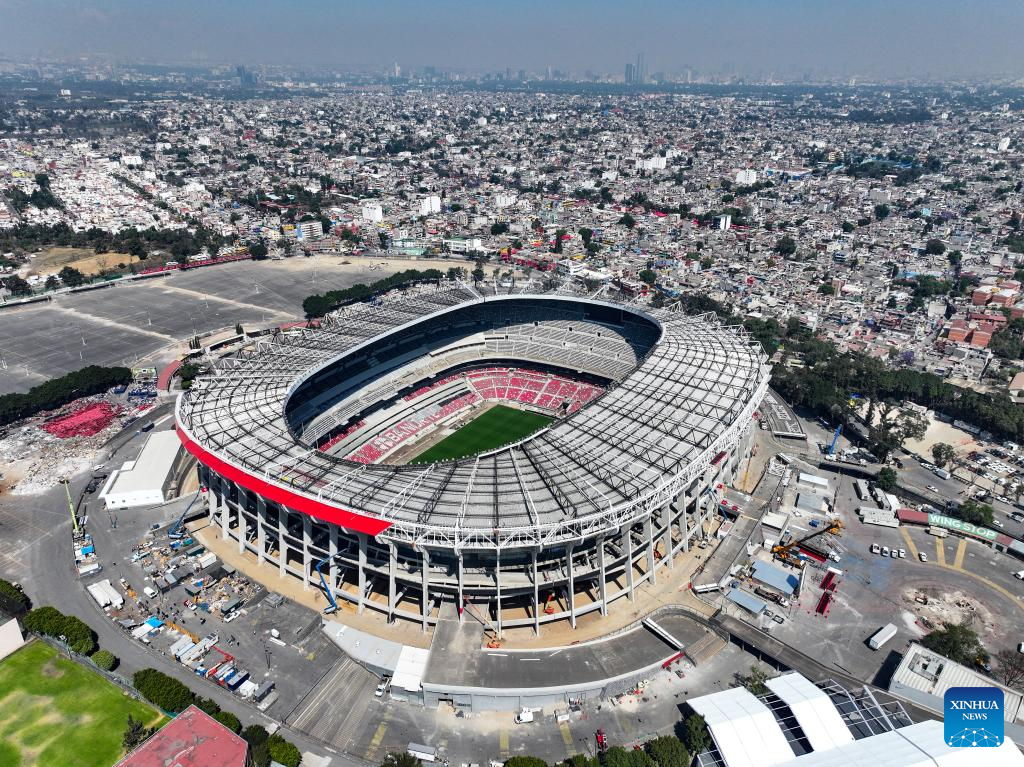 This photo shows the exterior of the Azteca Stadium under renovation in Mexico City, Mexico, March 3, 2026. The expanded 48-team World Cup, to be co-hosted by the United States, Canada, and Mexico, will run from June 11 to July 19, 2026. Mexico City's iconic Azteca Stadium, which staged the 1970 and 1986 World Cup finals, will host the opener and four other matches in the next edition of football's showpiece tournament. (Xinhua/Li Muzi)