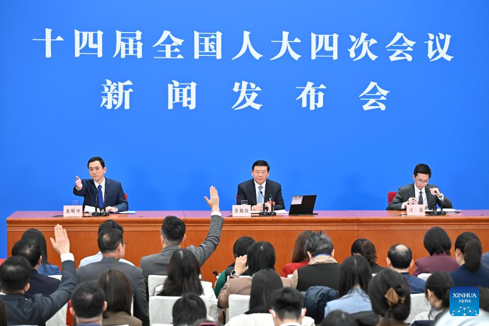 Lou Qinjian, spokesperson for the fourth session of the 14th National People's Congress (NPC), attends a press conference at the Great Hall of the People in Beijing, capital of China, March 4, 2026. The NPC, China's national legislature, held a press conference on Wednesday, one day ahead of the opening of its annual session. (Xinhua/Wang Xi)