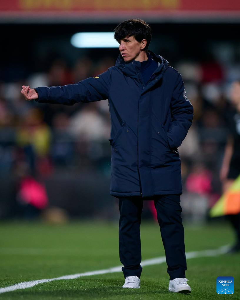 Spain's head coach Sonia Bermudez reacts during the FIFA Women's World Cup Qualifiers football match between Spain and Iceland in Castellon, Spain on March 4, 2026. (Str/Xinhua)