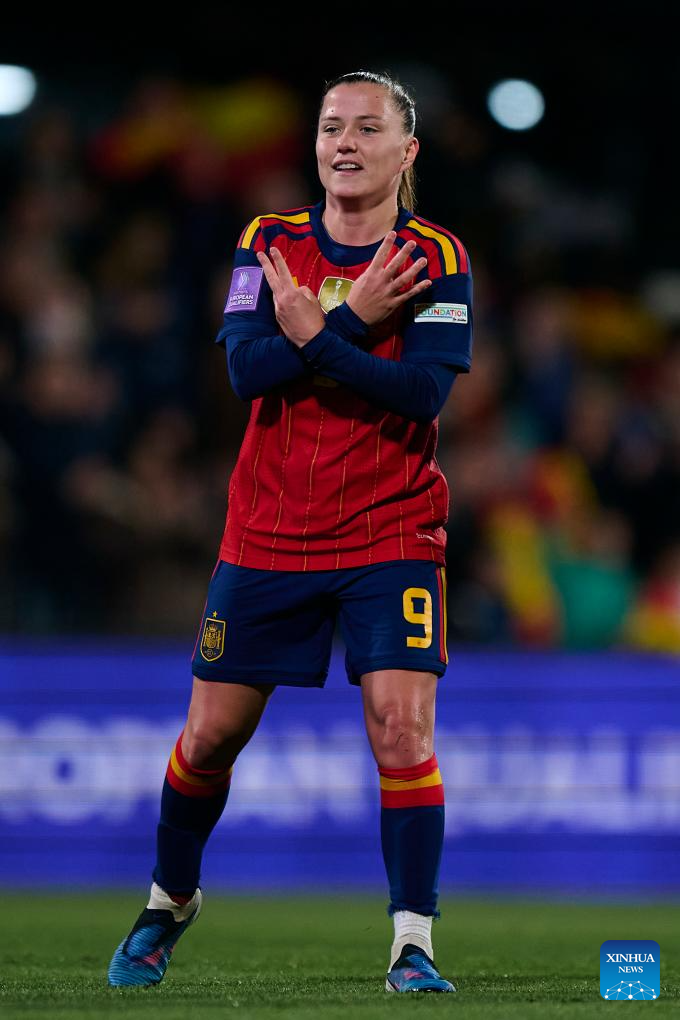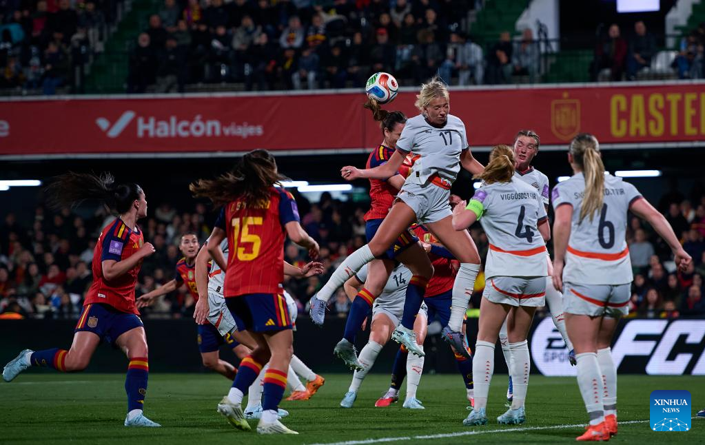 MADRID, March 3 (Xinhua) -- Claudia Pina scored twice as reigning FIFA Women's World Cup champion Spain beat Iceland 3-0 at home in a qualifier on Tuesday.