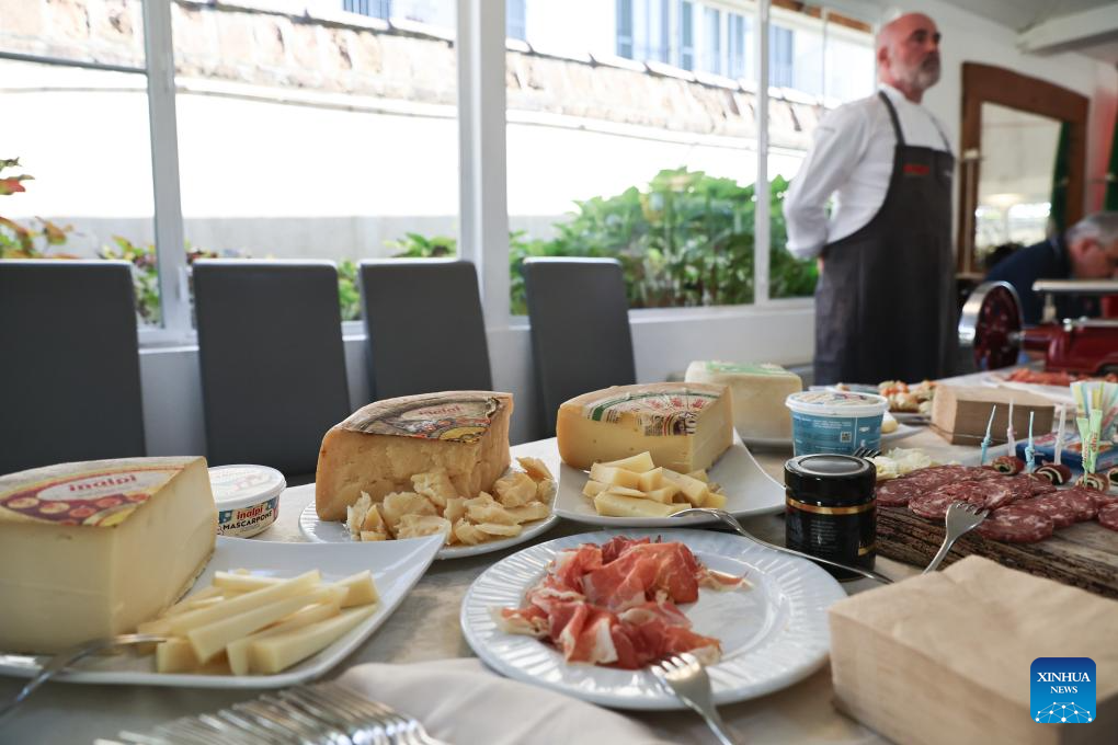 This photo taken on Oct. 30, 2025 shows dishes made by dairy products of Inalpi, an Italian dairy company, in Moretta, Italy. Agriculture is an industrial pillar of Italy, a country which uses 56 percent of its land for agriculture. The country is home to about 1.6 million farm-based businesses, many of which make agri-food products prized worldwide for their quality and craftsmanship. Italian agri-food companies see the eighth China International Import Expo (CIIE) as a key gateway to the world's second-largest consumer market, where they seek greater space for sales and partnerships. (Xinhua/Li Jing)
