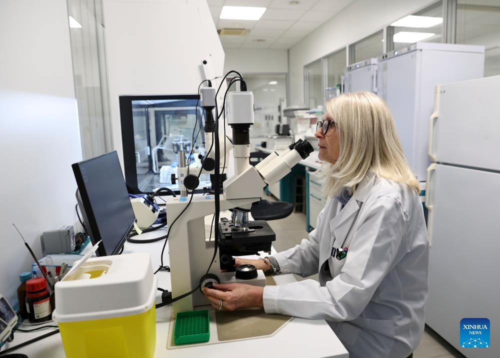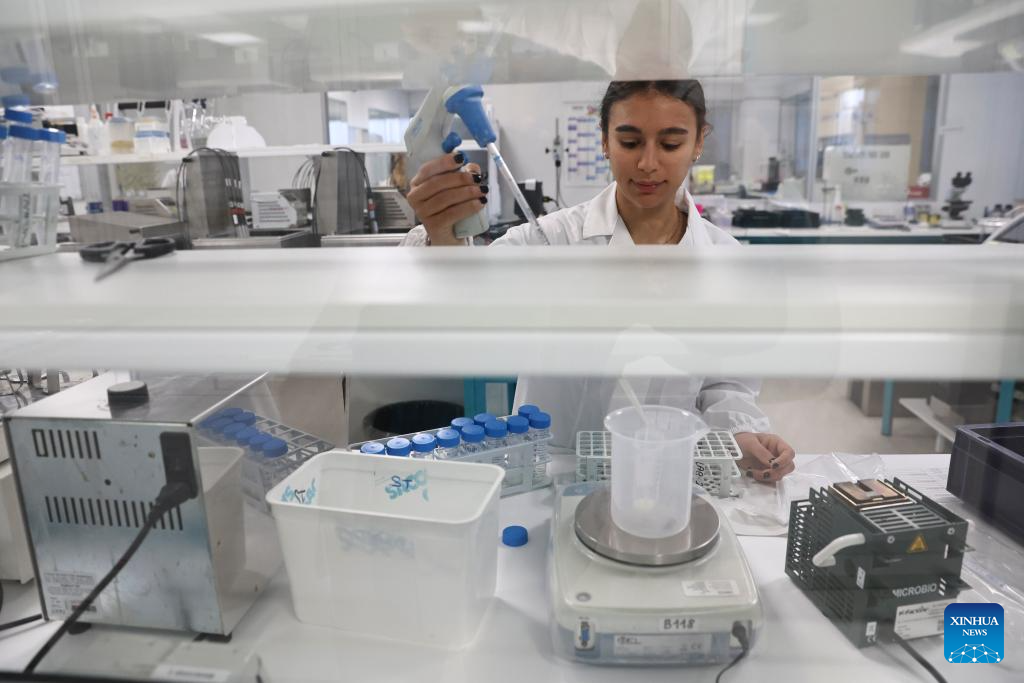 A staff member conducts probiotics test at the headquarters of Inalpi, an Italian dairy company, in Moretta, Italy, Oct. 30, 2025. Agriculture is an industrial pillar of Italy, a country which uses 56 percent of its land for agriculture. The country is home to about 1.6 million farm-based businesses, many of which make agri-food products prized worldwide for their quality and craftsmanship. Italian agri-food companies see the eighth China International Import Expo (CIIE) as a key gateway to the world's second-largest consumer market, where they seek greater space for sales and partnerships. (Xinhua/Li Jing)