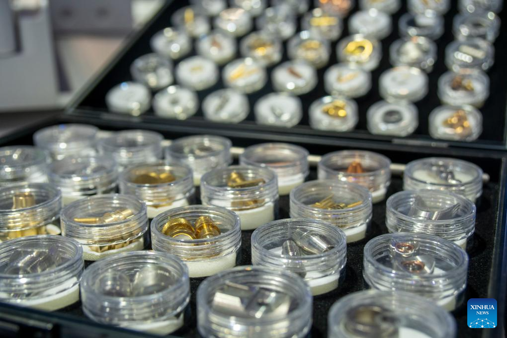 This photo shows precision components at the Innovation Incubation Special Section during the eighth China International Import Expo (CIIE) in east China's Shanghai, Nov. 9, 2025. The Innovation Incubation Special Section at this year's CIIE provides participating global startups and talents with technological innovation resources and cooperation opportunities to jointly explore and develop the Chinese market. (Xinhua/Ding He)