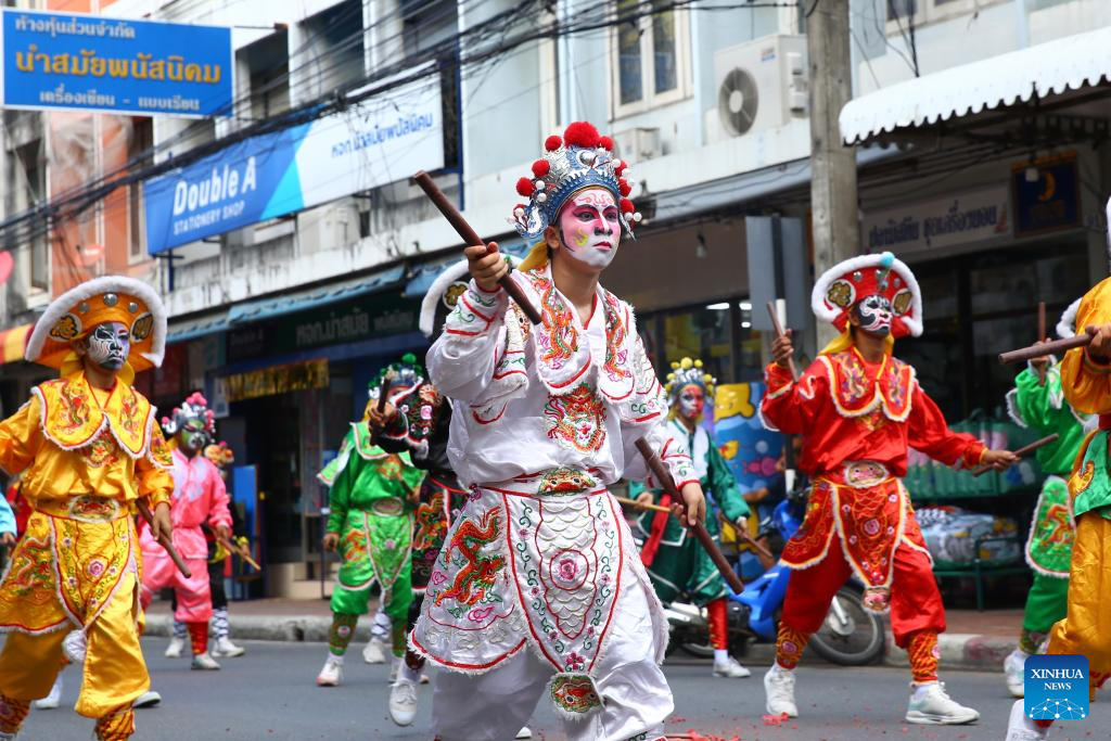 Members of Nigou Yingge Team from Puning, China's Guangdong Province, perform in the district of Phanat Nikhom in Chonburi province, Thailand, Feb. 28, 2026. (Xinhua/Sun Weitong)