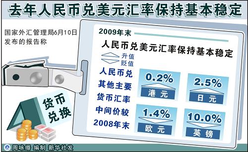 去年人民幣兌美元匯率保持基本穩定