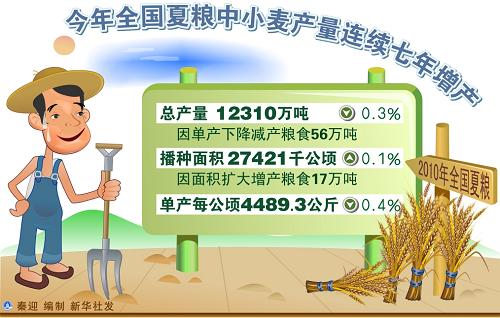 今年全國夏糧中小麥產量連續七年增產
