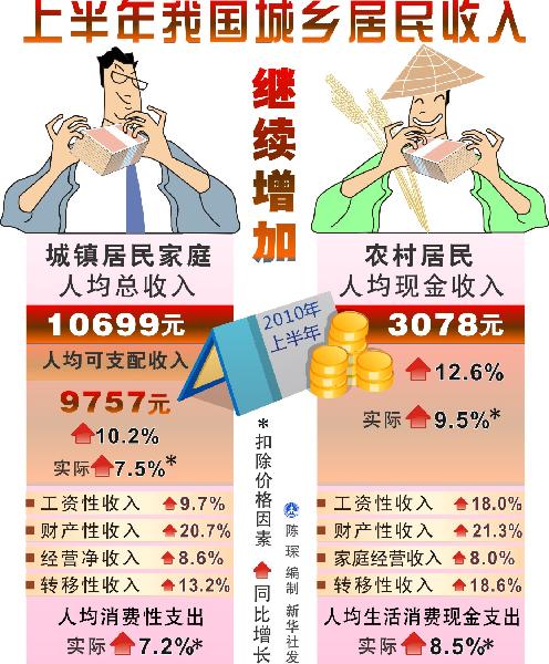 圖表:上半年我國城鄉居民收入繼續增加
