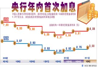 央行選取這個時點加息,不禁讓人聯系到統計局將于近日公布的1月份CPI,市場普遍預計CPI會超過5%的高點。專家認為,今年央行可能還將有三至四次加息,同時還會繼續上調存款準備金率。 [詳細]