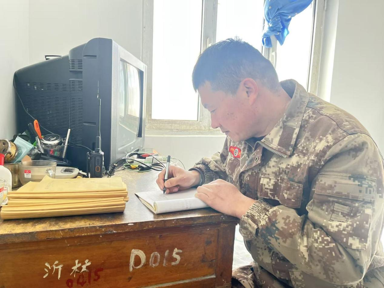 2月20日,护林员蔡长春在记录工作日志。新华网 吕爱玲摄
