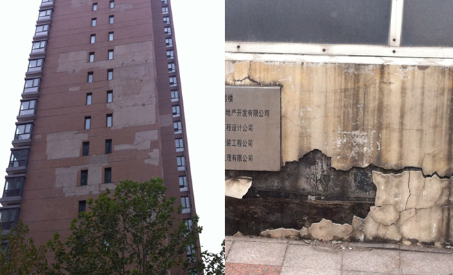 小區內部環境較好,與處于同一區域的富力城相比要安靜許多,很適合老人和孩子居住。但小區樓體的外立面的確會降低小區的居住品質,小區外立面從遠處看像是打了很多“補丁”,到了近處觀察是外立面的貼磚掉落,只剩下了墻體的水泥裸露在外。