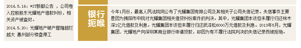 遭到業主維權舉報,稱其資金鏈斷裂、所開發的合家春天項目停止施工。 |