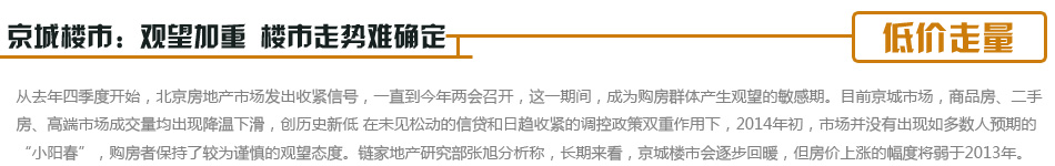在房價小幅回調、資金面偏緊、信貸緊縮,必會導致樓市成交量緩慢,整個房地產行業洗牌的進一步加速。2014年最值得關注的變量之一是樓市供求結構或將被逆轉...