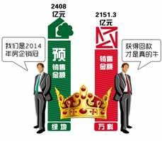 以越秀地產(chǎn)為例,其于1月13日發(fā)布年度業(yè)績(jī)顯示,2014年,越秀地產(chǎn)累計(jì)合同銷售額達(dá)220.14億元,這意味著這家擁有31年歷史的老牌粵派房企順利完成2014年度銷售目標(biāo)220億元。在擴(kuò)張的進(jìn)程中,有注重張弛有度和能力提升的,如越秀;也有找準(zhǔn)定位,深耕某個(gè)區(qū)域的,如奧園。