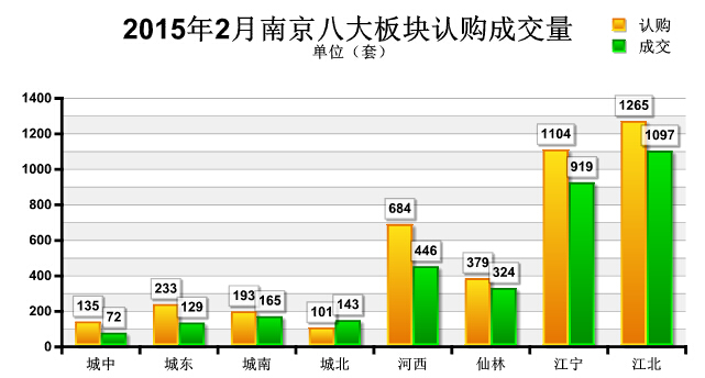 截止到2月28日,南京網上房地產數據顯示,2月南京樓市新房認購4094套、成交3295套,日均賣房146套。環比上月(備注:2015年1月南京樓市商品住宅認購6937套、成交6349套,日均賣房132套)認購量下跌4成,成交量下跌近5成。 與去年相比(備注:2014年2月南京樓市商品住宅認購3574套,成交3459套,日均賣房127套)。認購量上漲15%,成交量下跌4.7%。 …[詳細]