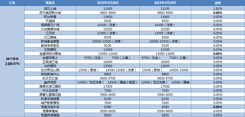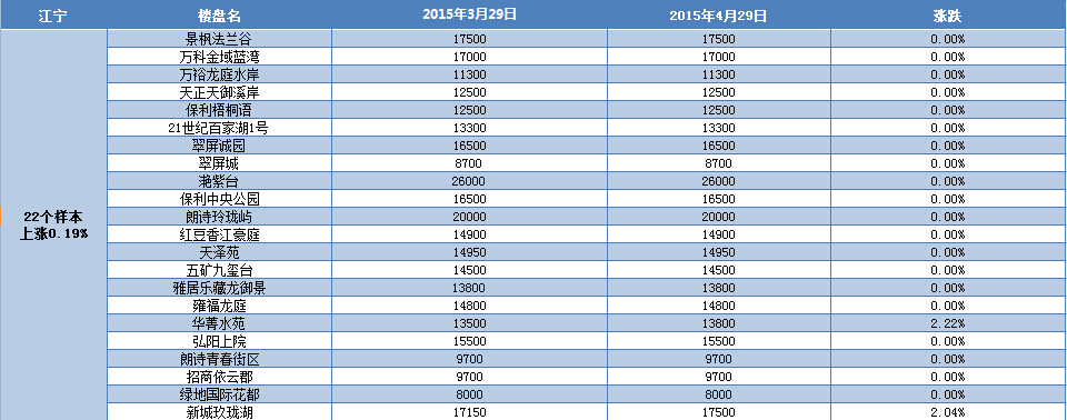 近日,新華房產通過對南京八大板塊在售的127家樓盤進行了房價漲跌統(tǒng)計,結果發(fā)現,4月,南京房價環(huán)比微漲0.22%。其中,仙林、城東、江寧、江北房價出現了不同程度的漲幅,其余板塊房價持平。 [詳細]