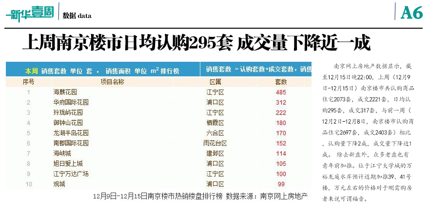 上周南京日均認購295套