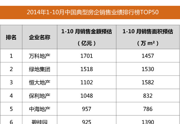 新華房產(chǎn)“房企業(yè)績榜”是新華網(wǎng)聯(lián)合房地產(chǎn)咨詢服務機構(gòu)億翰智庫,結(jié)合中國大陸以房產(chǎn)開發(fā)為主營業(yè)務的企業(yè)經(jīng)營數(shù)據(jù)(住宅),獨家發(fā)布銷售業(yè)績排行榜(TOP 50)。本欄目每月首周更新,時間跨度為從當年初到發(fā)布月(不含)止,所選取物業(yè)屬性主要針對可售型住宅物業(yè),數(shù)據(jù)來源億翰智庫數(shù)據(jù)及各企業(yè)公報等。