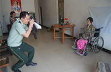 邊防官兵照顧老人吃飯