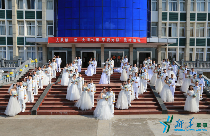 ????新華社杭州9月24日電(林健、方思航、史奎吉)9月24日,農歷八月廿四,浙江舟山某軍港處處洋溢著喜慶,東海艦隊某驅逐艦支隊在這里為35對新人,舉行集體婚禮。這是這個支隊舉辦的第二屆“大海作證·軍艦為媒”主題集體婚禮。