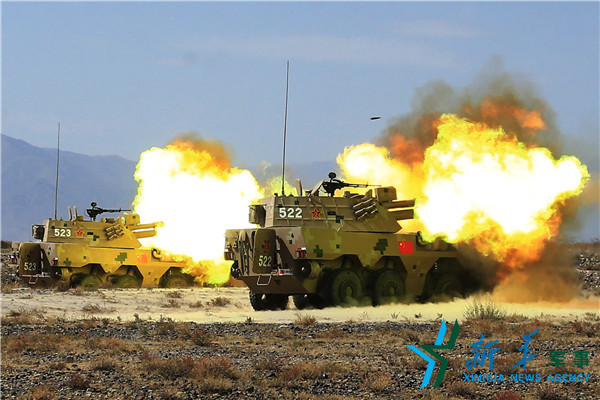 ??? 在吉爾吉斯斯坦巴雷克奇舉行的“和平使命—2016”上海合作組織聯(lián)合反恐軍事演習(xí)第三次實兵實彈合練中,中方自行火炮進行實彈射擊(9月19日攝)。新華社發(fā)(王寧 攝)