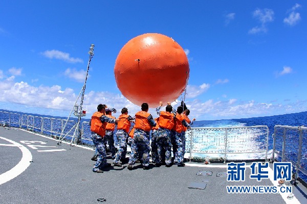 順利完成射擊任務的長沙艦,與海口艦進行“敵我角色互換”,在演練區域內,布放下靶標。