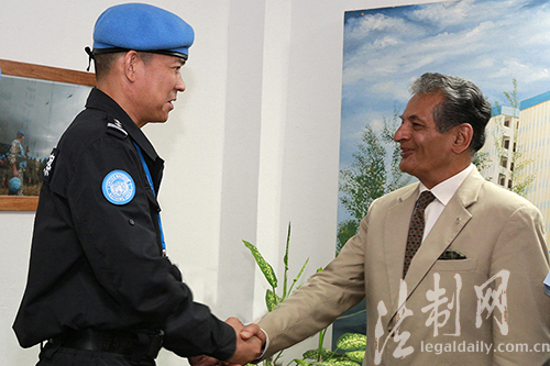 圖為聯利團秘書長特別代表法里德·扎里夫接見防暴隊陳利華政委