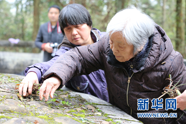 在江西蓮花縣玉壺山,龔全珍老人為甘祖昌將軍掃墓(4月1日攝)。新華社發(fā)