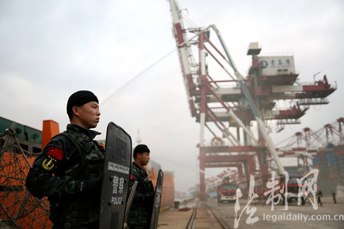 ????此次海上聯(lián)合反恐演練以阻止多名“涉恐分子”潛入港區(qū)及外輪企圖進(jìn)行恐怖活動(dòng)為背景,幾名“恐怖分子”駕車意圖混入油港區(qū)實(shí)施破壞,被識(shí)破后仍試圖強(qiáng)行進(jìn)入。與此同時(shí),前灣港集裝箱碼頭也發(fā)現(xiàn)幾名“涉恐分子”偽裝成船員,隨集裝箱貨輪進(jìn)入港區(qū)實(shí)施破壞行動(dòng),并在一艘即將離港的貨輪上劫持“人質(zhì)”,企圖逃離港區(qū)。面對(duì)如此復(fù)雜的局面,公安、邊檢、海關(guān)、國檢、港口等部門接到情報(bào)預(yù)警信息后,及時(shí)啟動(dòng)海上聯(lián)合反恐處突應(yīng)急預(yù)案,聯(lián)合反恐指揮部及時(shí)下達(dá)指令,參加演練單位立即行動(dòng),邊檢利劍突擊隊(duì)隊(duì)員迅速登輪控制“涉恐分子”,消防部門架設(shè)水槍撲滅引燃物品,海關(guān)、海事巡邏艇在集裝箱船舶周邊海域鋪設(shè)防油污圍欄,并收繳走私涉恐物資。成功處置險(xiǎn)情后,碼頭恢復(fù)生產(chǎn)作業(yè)。