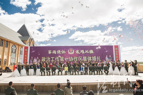 ????8月29日,內蒙古邊防總隊呼倫貝爾邊防支隊在美麗的輝河濕地舉辦了“家國情懷 愛耀北疆”集體婚禮。支隊政委李天勇、阿日哈沙特邊檢站政委湯天彪、支隊部分常委、協作區單位部分領導及支隊共建單位領導出席。